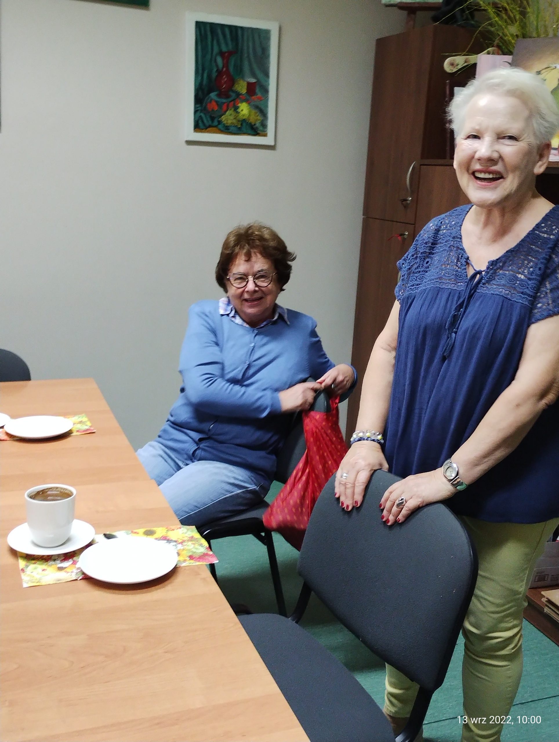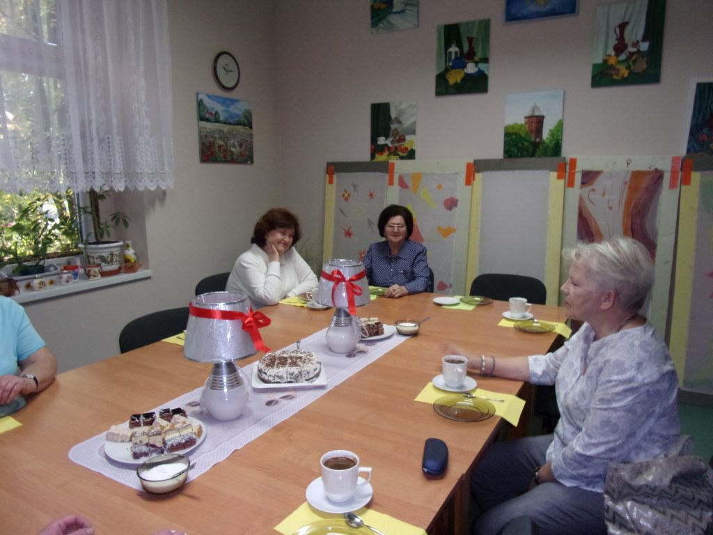 DNIA 5.10.2021 PANIE Z SEKCJI PLASTYCZNEJ OBCHODZIŁY IMIENINY I URODZINY TJ. EUGENIA CHOJNACKA I BRONISŁAWA GRZEGOREK . ZOSTAŁY PANIOM ZŁOŻONE ŻYCZENIA ,ODŚPIEWANE STO LAT,BYŁ SŁODKI POCZĘSTUNEK , KAWA I SKROMNY PREZENT.