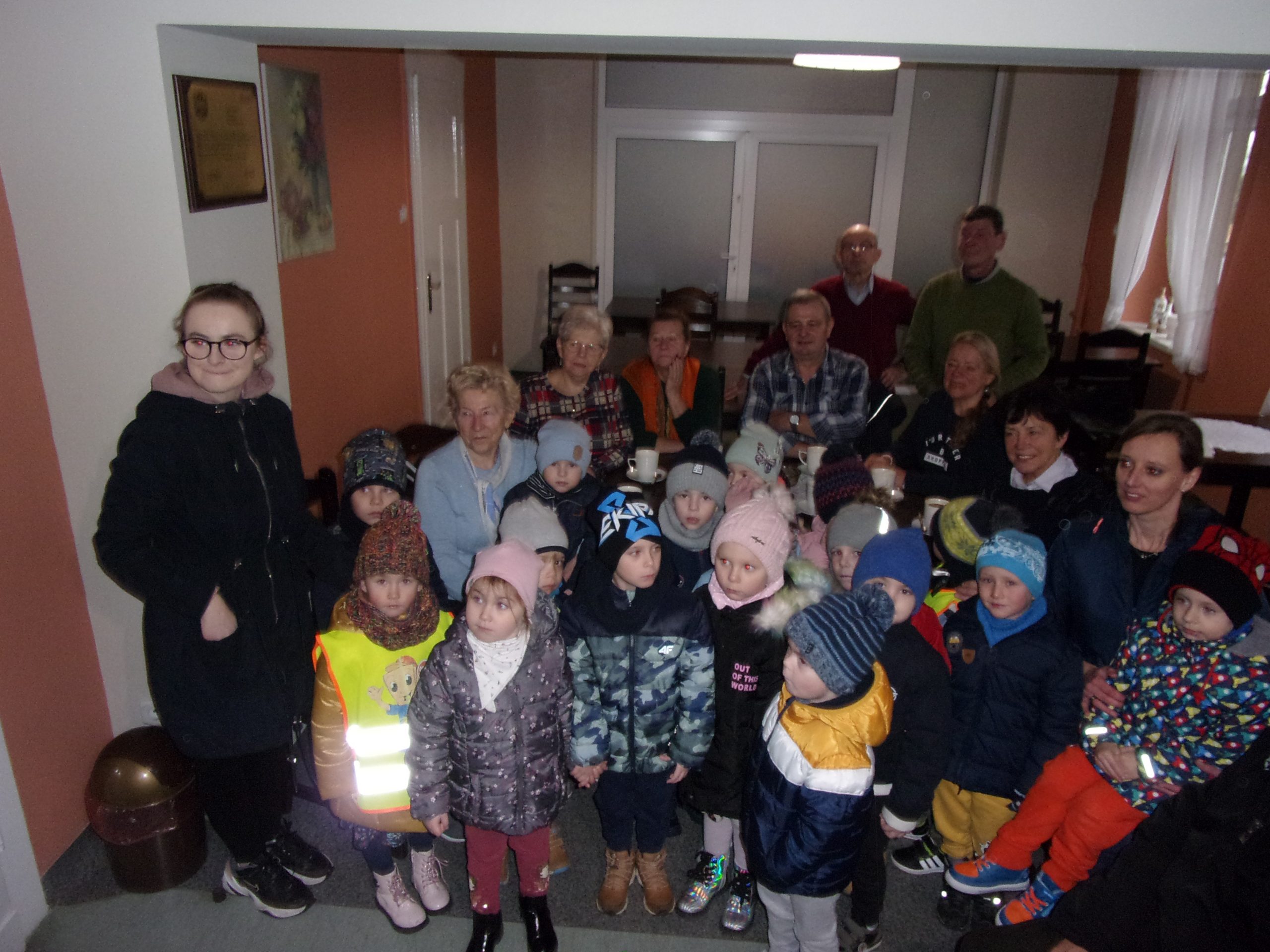 DNIA 15.11.2021 R KLUB SENIORA ODWIEDZIŁY DZIECI Z PRZEDSZKOLA PARKOWE SKRZATY Z KOŹMINA WLKP- GRUPA PANI ANNY KOWALCZYK KRASNOLUDKI Z OKAZJI DNIA SENIORA. DZIECI ZŁOŻYŁY ŻYCZENIA SENIOROM, WRĘCZYŁY PREZENT,WSZYSCY ODŚPIEWALI STO LAT, ZROBIONE BYŁO WSPÓLNE ZDJĘCIE.