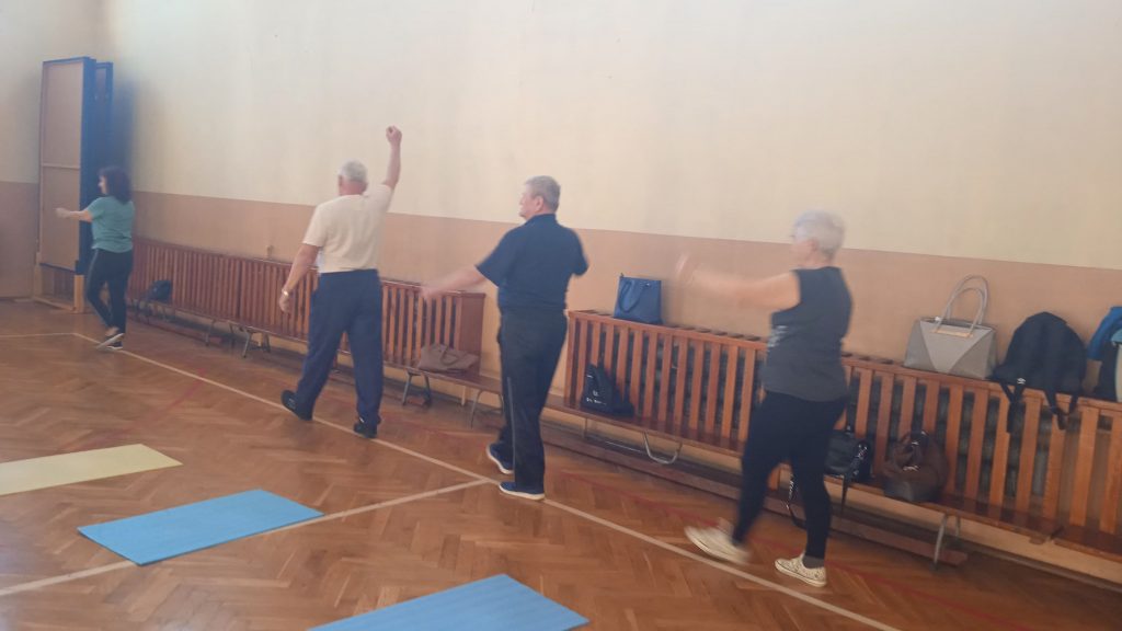 NASI WSPANIALI SENIORZY W KAŻDY PONIEDZIAŁEK UCZESTNICZĄ W ZAJĘCIACH WYCHOWANIA FIZYCZNEGO .