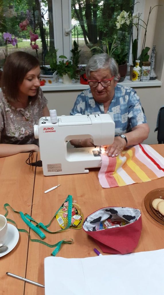 - wprowadzanie różnych tematów przez terapeutę wspomagających aktywność umysłową seniora, dyskusje,