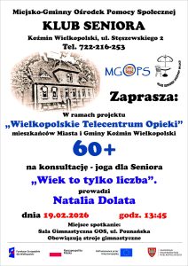 Miejsko Gminny Ośrodek Pomocy Społecznej i Klub Seniora z Koźmina Wielkopolskiego realizują grant pt. ,,Wielkopolskie Telecentrum Opieki”-w ramach grantu Seniorzy z Miasta i Gminy Koźmin…